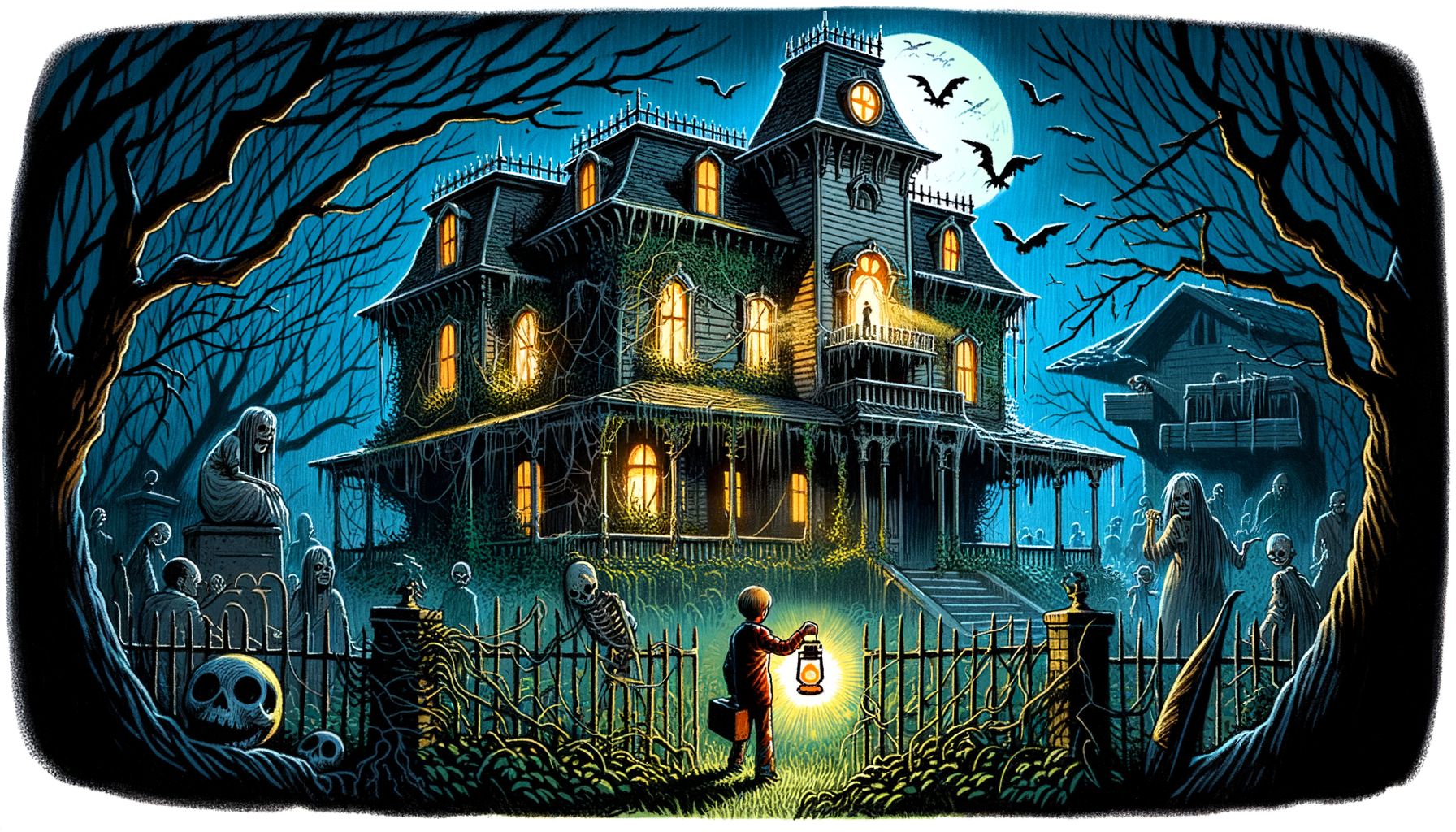 Once upon a spooky Halloween night, a creepy old mansion sat nestled behind a tangle of overgrown vines, its windows staring blankly like the eyes of a long-dead skeleton. This was ‘The Wailing House,’ famed for its chilling unending screams that tormented the sleepy town.