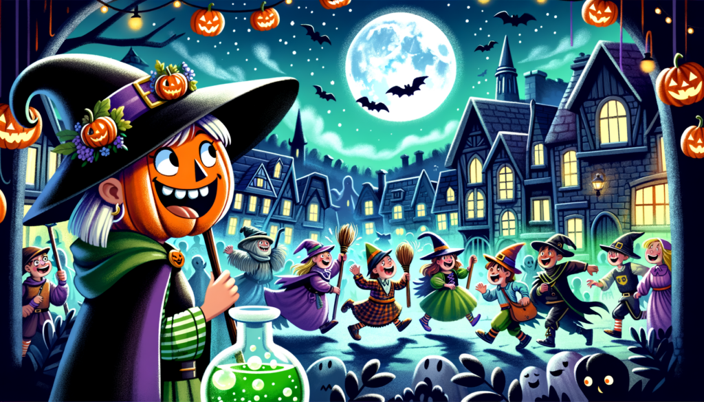 Title: “Winny’s Wicked Brew: A Halloween Tale of Joy and Fright”