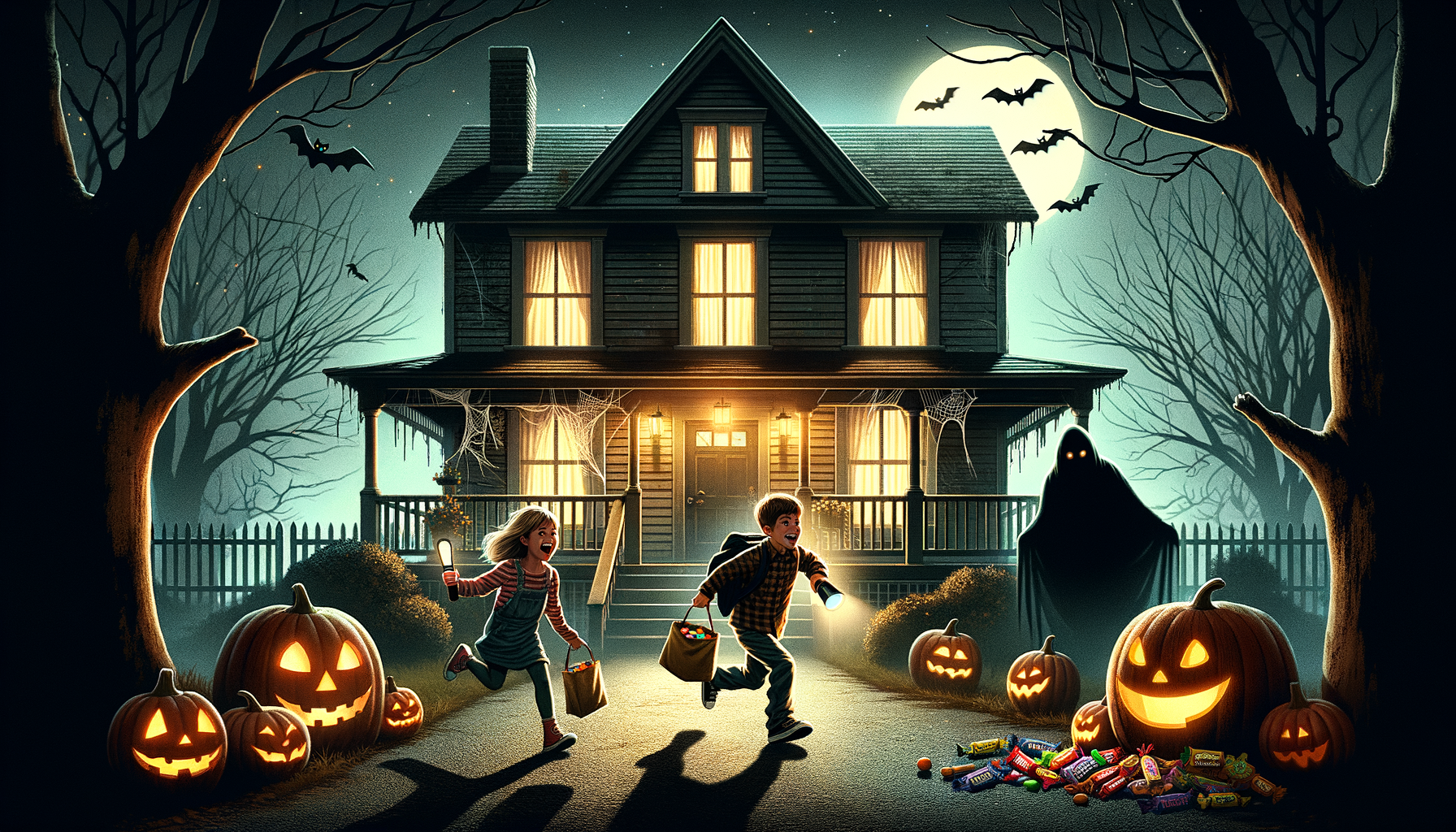 That seemed like the end of a perfect Halloween tale, right? But here’s where it gets interesting. You see, the haunted house wasn’t haunted at all. The shadow? ‘Ghosty’, their neighbor’s mischievous cat who had a knack for illusions. And the chuckle? From none other than Old Mr. Patterson who’d been looking forward to a peaceful Halloween night, now sitting on his porch, a twinkling smile on his face, their candy-filled bags beside him.