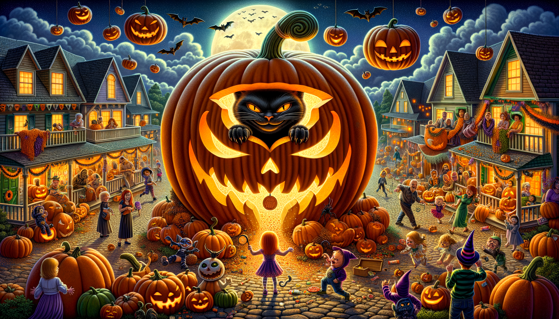 With a devilish grin, he realized his new circumstance. He scared the gleeful villagers even more from his orange fortress, popping his head out, causing shivers and dropped candies. But as the night waned, Binx got tired. His powerful pumpkin yawns echoing through the night.