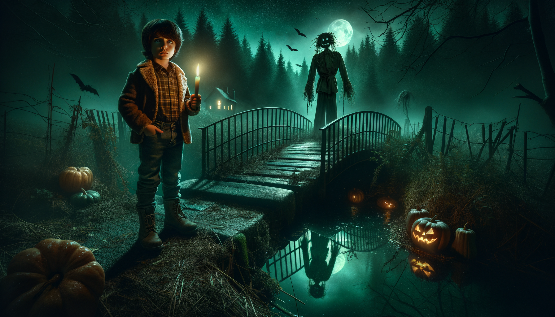As he ventured deeper, the wind began to whisper ghostly warnings. A disheveled old scarecrow suddenly stirred, glowing in an eerie, emerald light. Mystified but undeterred, Timmy continued his journey, an eyebrow quirked in skepticism.